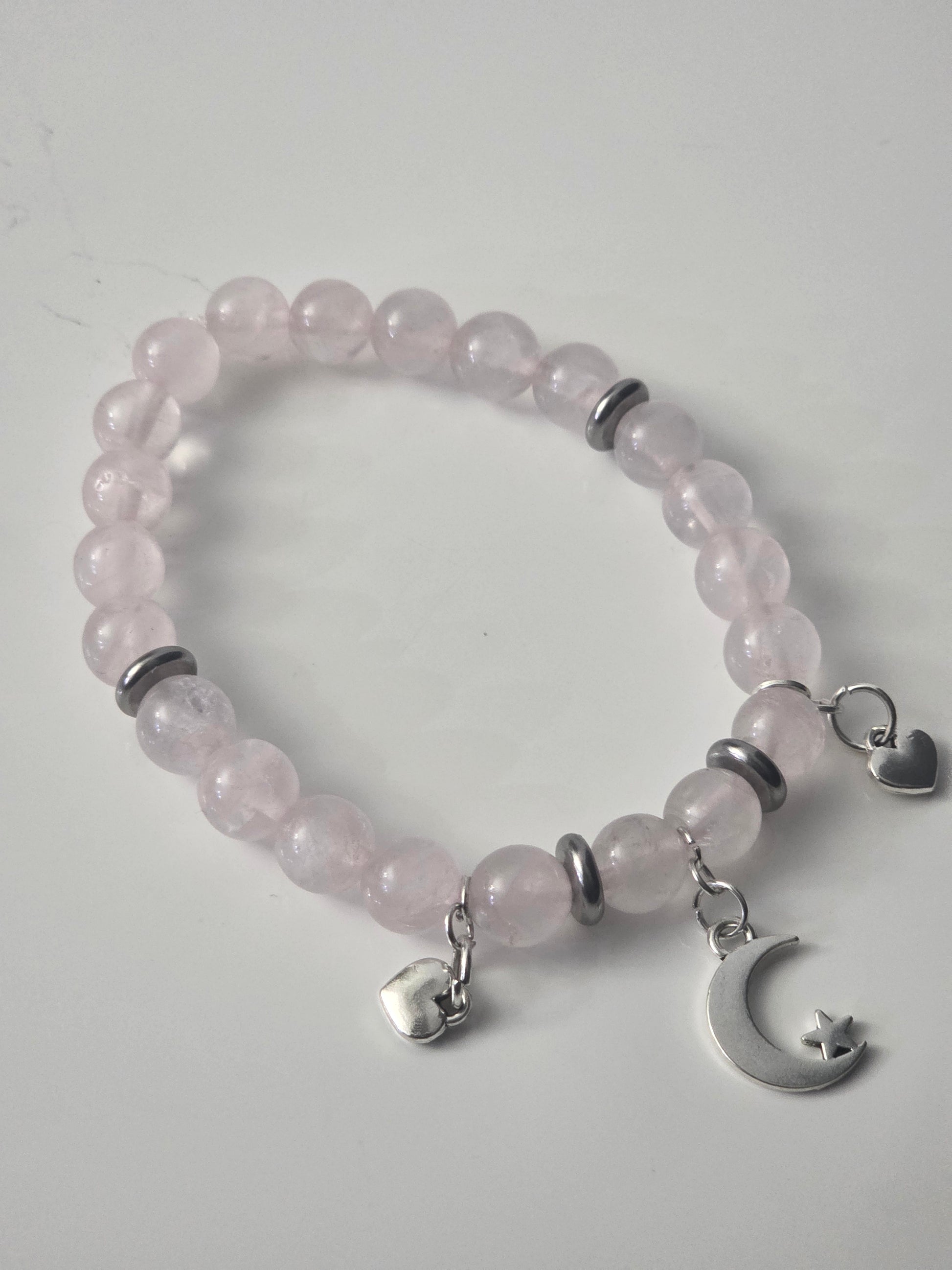 1- Rose Quartz Bracelet with 3 charms 8mm