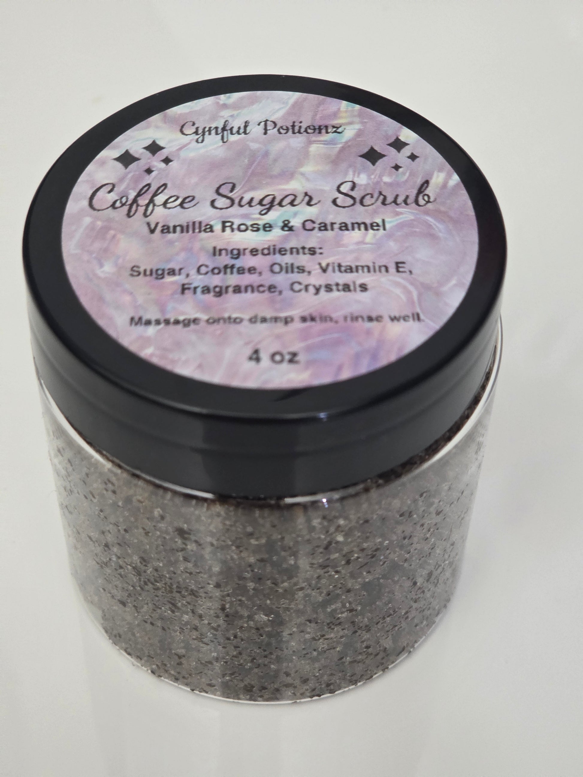 Indulge your skin in a luxurious exfoliating ritual with our Coffee Sugar Scrub Collection, handcrafted to soften, smooth, and brighten your glow. Each scrub blends fine sugars, rich coffee grounds, nourishing oils, and signature fragrance blends—then topped with intuitively selected crystals for an extra touch of magic.