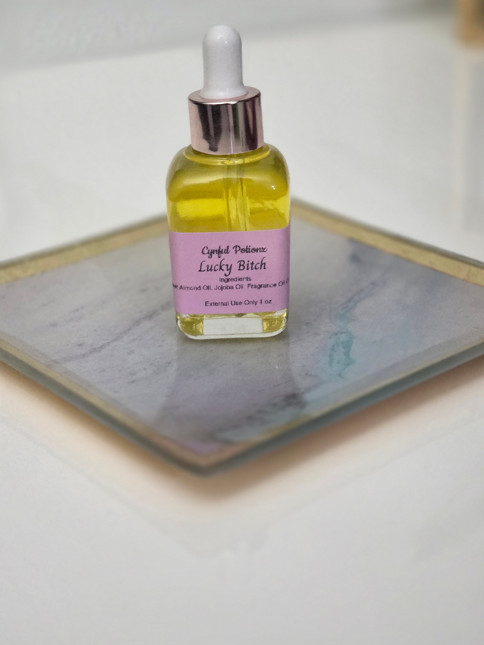 Anoint yourself with luck and serenity! Our signature "Lucky Bitch" Oil is infused with sacred ingredients and crystals to attract positivity and prosperity into your life. With its heavenly scent, this luxurious oil not only brings good fortune but also uplifts your spirit and calms your mind. Use it whenever you need a boost of luck and tranquility.