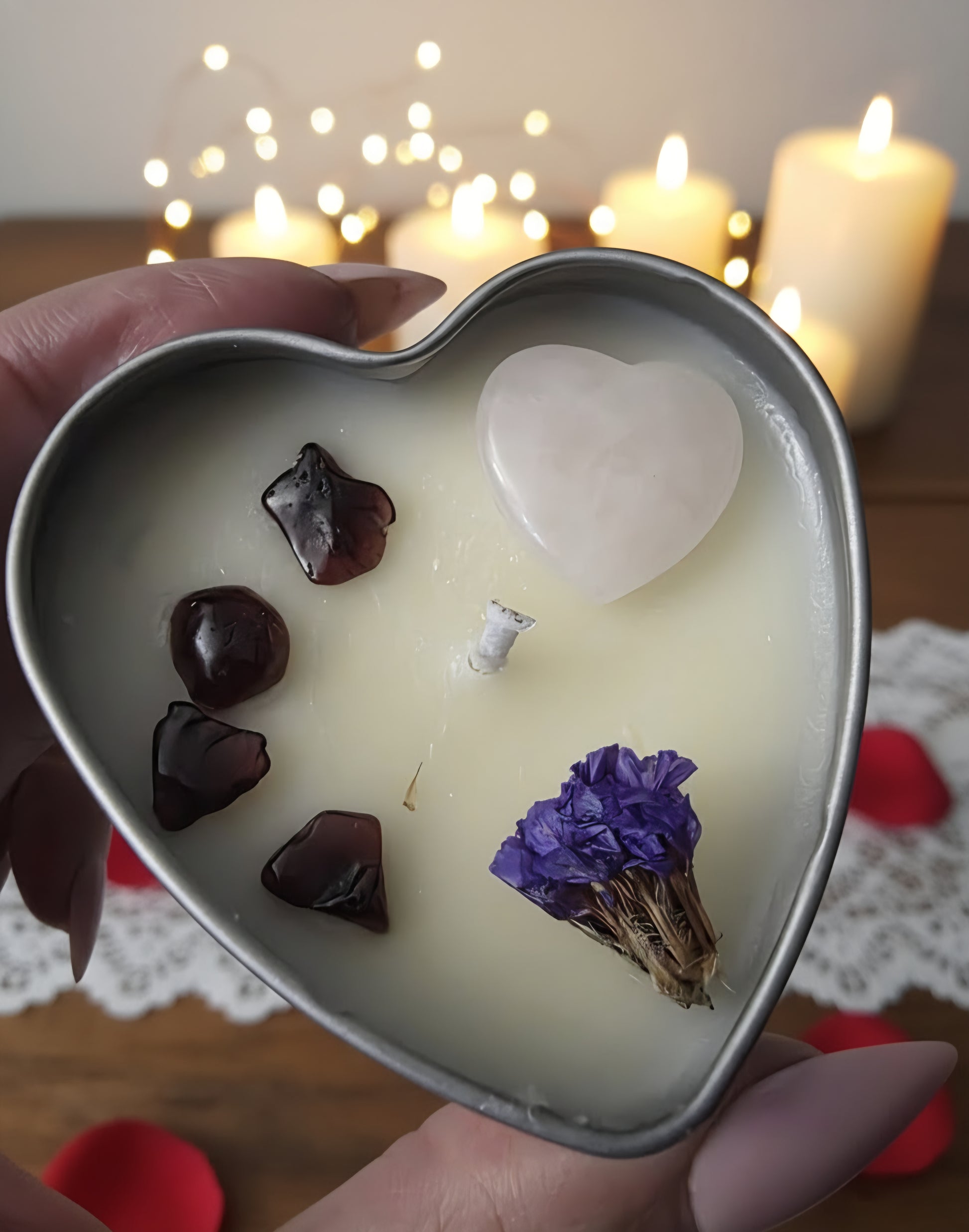 Infused with rose quartz for love and garnet for passion, this candle turns any moment into a ritual of devotion, desire, and glowing feminine energy.